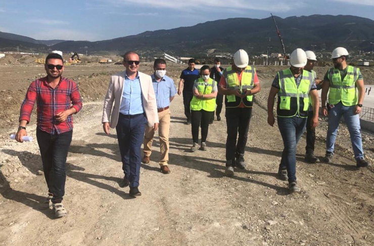 Hatay Büyükşehir Belediyesi 2. Bölge Sorumlusu ve Genel Sekreter Yardımcısı Taygun Cantürk ile İşletme ve İştirakler Daire Başkanı Mehmet Kaplan, yapımı büyük bir hızla devam eden Expo alanındaki çalışmaları da yerinde inceleyerek çalışmalar hakkında bilgi aldılar.