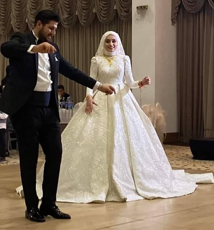Güzel gelin Naime’nin türban tasarımlı gelinliği şıklığı ile göz kamaştırırken, yakışıklı damat Ebubekir Enes’in beyaz mendilli, pavyonlu siyah damatlığı konuklarca beğeniyle izlendi. Gelin hanımın simli ve taşlı gelinliği geceye damgasını vurdu.