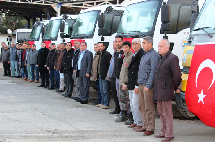 İskenderun Belediyesi envanterinde bulunan 4 Kamyon, bir lobet, bir greyder, bir ekskavatör, bir kamyonet ve bir pikap sınırda görevli askeri birliklere destek olmak amacı ile sınır hattına gönderildi.