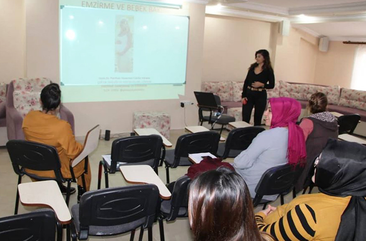 Başkan Tosyalı; “Sağlıklı toplum, sağlıklı anne ve sağlıklı bebek için gebe okulu eğitmenlerimiz Doç. Dr. Ayşe Neslin Oğuzhan Akkoca, Çocuk Sağlığı ve Hastalıkları Uzmanı Yasemen Karaca Psikolog Esra Akın Özcan, Diyetisyen Bahar Tümkaya ve Dr. Müge Tellioğlu ile kurslara katılan anne adaylarına seminerler veriyor” dedi.