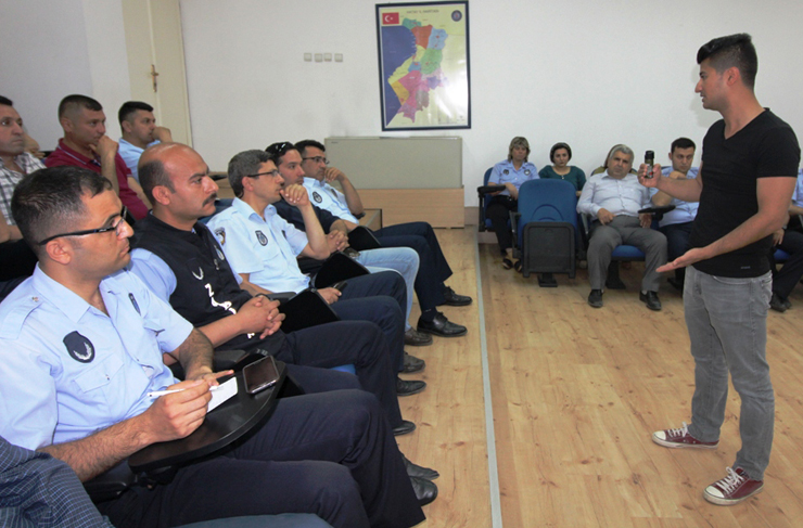 İskenderun Belediyesi brifing salonunda düzenlenen eğitimlere, Zabıta Müdürü Bekir Aksoy, Zabıta Müdürlüğünde görevli zabıta memurları eğitime katıldı. Çevik Kuvvet Şube Müdürlüğünde görevli Polis Memuru Şahin Erener tarafından verilen eğitimlerde, yaşanabilecek toplumsal olaylar ya da denetim görevi sırasında meydana gelebilecek olası saldırılar karşısında, biber gazının nasıl kullanılması gerektiği konularında ayrıntılı bilgi verildi.