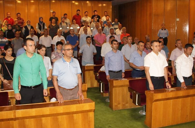 İskenderun Belediyesinde Kurban Bayramı nedeniyle belediyenin tüm birimlerinde görev yapan personel, belediye meclis salonunda bayramlaştı.