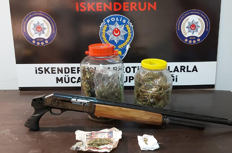 İskenderun Narkotik Suçlarla Mücadele (NSM) Grup Amirliği ekipleri tarafından Uyuşturucu Madde ticareti yapan ve kullanan şahıslara yönelik yapılan çalışmalar kapsamında, Esrar Maddesi, Av Tüfeği, Metamfetamin Maddesi ve Extacy Uyuşturucu Hap ele geçirildi. Yapılan operasyonda 10 kişi gözaltına alındı.