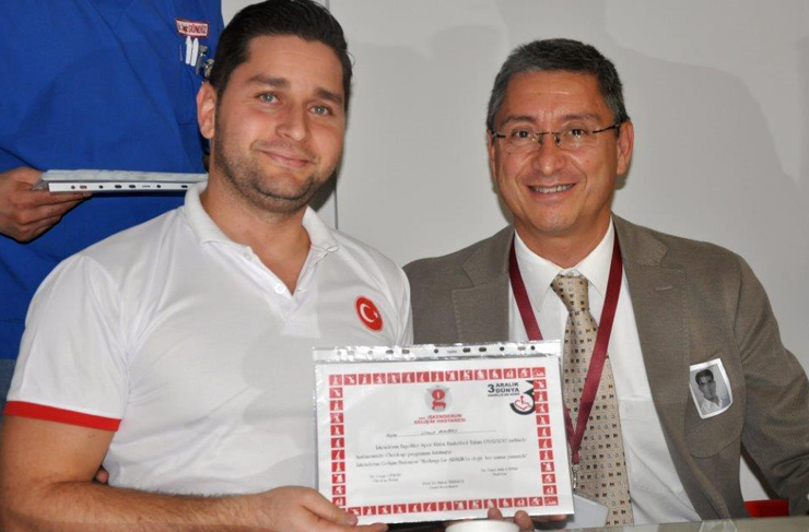 Konuşmaların ardından engelli sporculara hastane yönetimi tarafından, ‘Check Up Katılım Belgesi’ verildi. (Haber: Doğan SÜSLÜ)