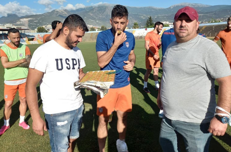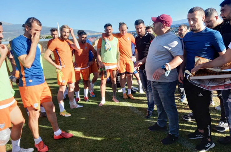 Çarşamba günü (bugün) saat 16.00’da 3. Lig play-off yarı finalinde Fethiyespor’u ağırlayacak olan İskenderun FK’ya destek ziyaretleri de devam ediyor. İskenderun 5 Temmuz Stadında yapılan son çalışmayı Turuncu-Mavili ekibin cefakâr taraftarları da izledi. İskenderun FK’nın amigolarından Metin Bağış ve taraftarlar, antrenman sonrasında teknik heyet ve futbolculara baklava ikram ederek başarı temennisinde bulundular. (Haber: İlyas Edip TERBİYELİ)