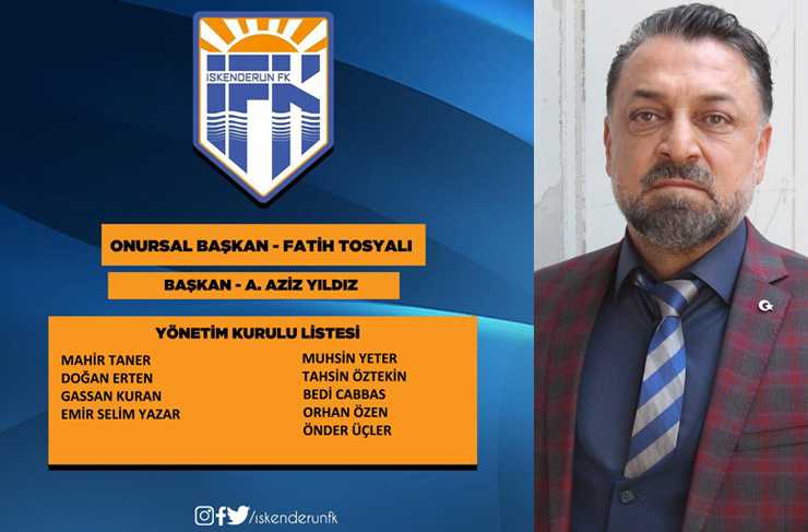 Kulüpten yapılan açıklamaya göre İskenderun Futbol Kulübü yönetim kurulu şöyle oluştu; “Aziz Yıldız (Kulüp Başkanı). Mahir Taner, Doğan Erten, Muhsin Yeter, Tahsin Öztekin, Gassan Kuran, Emir Selim Yazar, Bedi Cabbas, Orhan Özen, Önder Üçler (Yönetim Kurulu Üyesi).