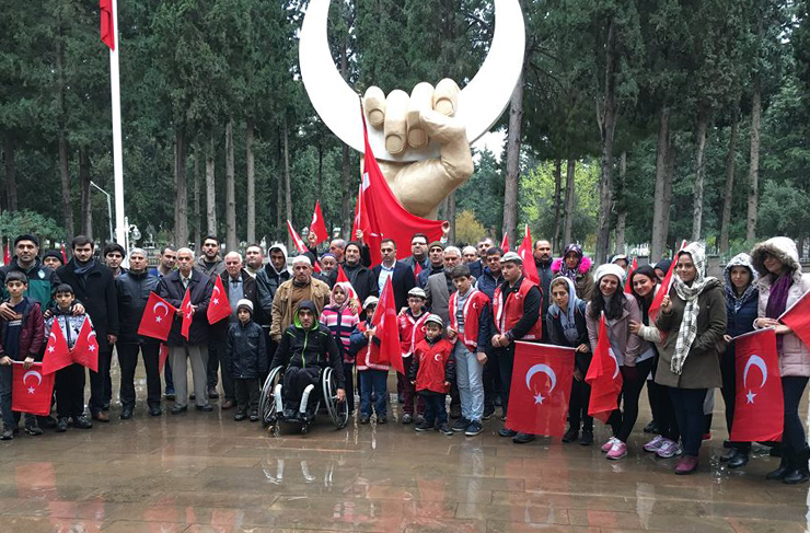 Şehitlikte, şehitlerimizin ruhuna yasin-i şerifler okundu ve Türk bayrakları eşliğinde şehitlerimiz göz yaşlarıyla yad edildi.