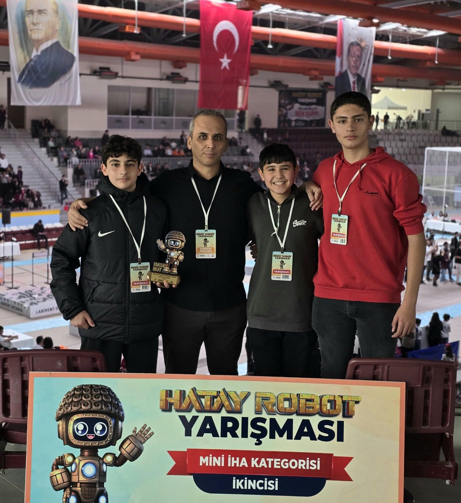 Hatay’da düzenlenen Hataybot Yarışması’nda İskenderun Gençlik Merkezi Deneyap Atölyesi öğrencileri önemli bir başarıya imza attı. İnsansız Hava Aracı (Mini İHA) kategorisinde yarışan ekip, geliştirdikleri proje ile yarışmayı ikinci sırada tamamladı.