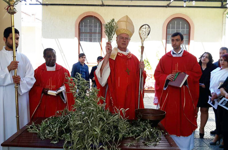 İskenderun Katolik Kilisesinde düzenlenen ayin bahçede başladı. Kilise bahçesinde başlayan ayinde pederler ve cemaat üyeleri, ellerinde zeytin dallarıyla bahçede küçük bir tur atarak daha sonra kilise içerisine girdiler.