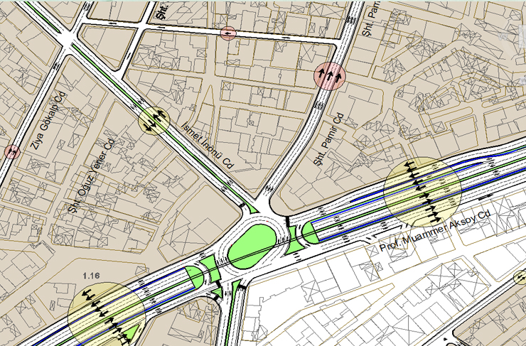 Ulaşım Master Planı çerçevesinde hazırlanan ve sirkülasyonu tamamlayan yollardan, Mithat Paşa Caddesinin Şehit Yalçın Aydın Caddesiyle İsmet İnönü Caddesi arasında kalan kısım, 512. Sokağın Yaşar Doğu Caddesiyle Şehir Er Ahmet Yaman Caddesi arasında kalan kısım ve Şehir Er Ahmet Yaman Caddesinin Fatih Sultan Mehmet Caddesiyle 512. Sokağın arasında kalan kısım başta olmak üzere toplamda 7 caddenin güzergah planı çift yön olarak belirlendi.