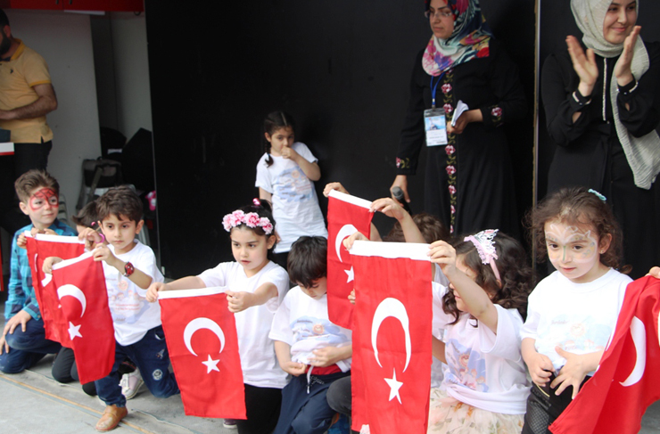 İskenderun Millet Parkında düzenlenen Çocuk Şenliğine İskenderun Belediye Başkanı Fatih Tosyalı’nın annesi Hacı Pervin Tosyalı, İskenderun Belediye Başkan Vekili Mehmet Ali Dokuzoğlu, İskenderun İlçe Müftüsü Osman Şekerci, kuran kursu öğrencileri, veliler ve çok sayıda vatandaş katıldı.