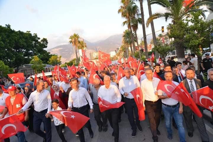 15 Temmuz 2022 Cuma günü Atatürk Anıtı önünde toplanmak suretiyle ve Mehteran Takımı eşliğinde oluşturulan yürüyüş kortejinde demokrasi ve milli irade şuuru etrafında kenetlenerek, birlik ve beraberliğimiz bir kez daha pekiştirildi.