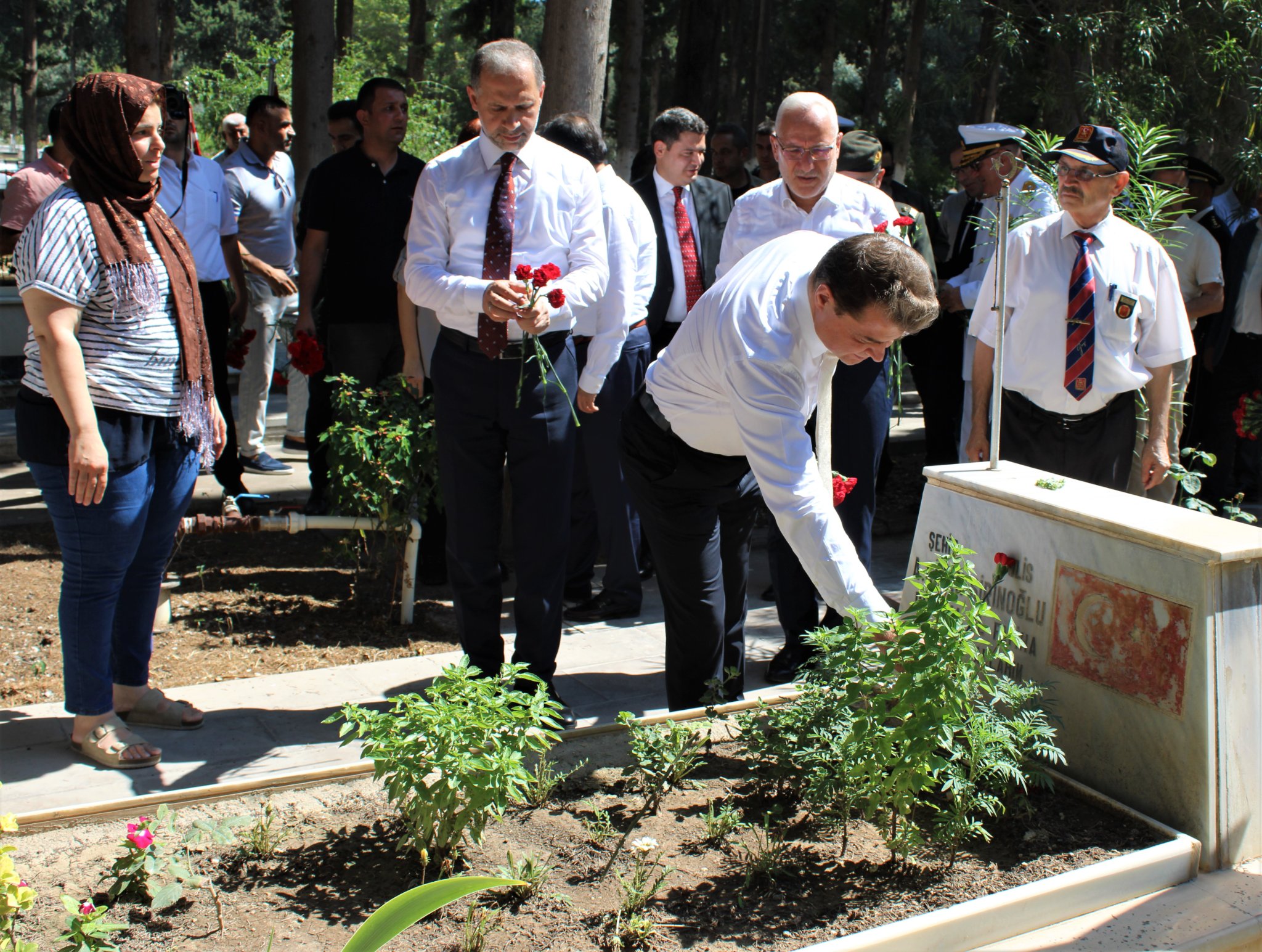 Vali Yardımcısı ve İskenderun Kaymakam Vekili Erhan Günay, şehitlerin kabirlerini tek-tek ziyaret ederek, başuçlarına karanfil bırakmasının yanı sıra muhterem aileleriyle de yakından ilgilenerek acılarını paylaştı.