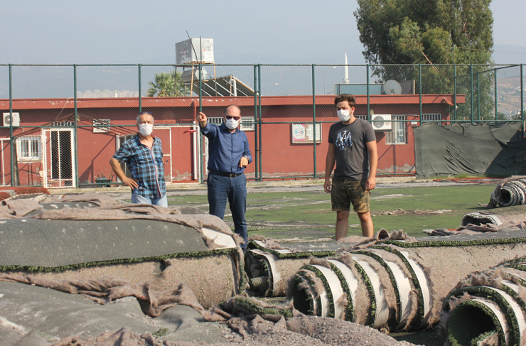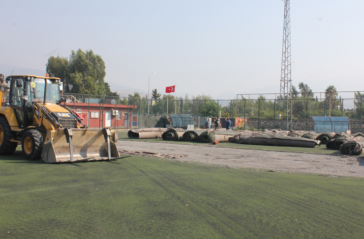 İskenderun Gençlik ve Spor İlçe Müdürlüğü’nün, sentetik futbol sahasında yenileme çalışmaları başladı. İskenderun Gençlik ve Spor İlçe Müdürü Ferit Ali Gündel çalışmaları yerinde incelerken, sökülen eski zeminin Sarıseki Mahallesindeki komplekste değerlendirileceğini belirtti.
