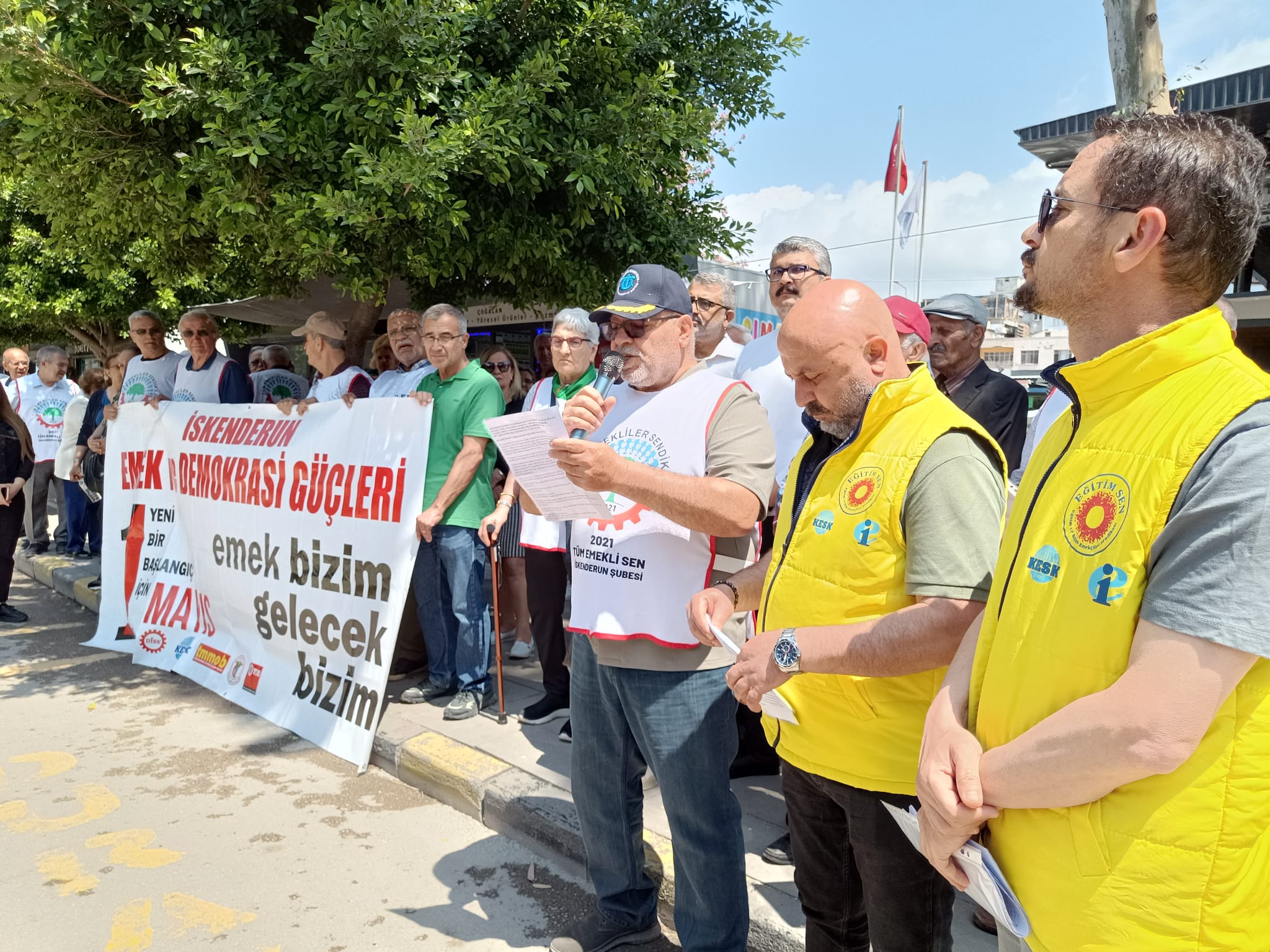 İskenderun 1 Mayıs Tertip Komitesi, Sağlıklı Yaşam Parkı’nda düzenlediği basın açıklamasıyla 1 Mayıs öncesi çağrısını yineledi. Çok sayıda sendika ve sivil toplum temsilcisinin katıldığı açıklamada, emekçilerin yaşadığı ekonomik ve sosyal sorunlara dikkat çekilerek, tüm işçi ve emekçiler 1 Mayıs’ta alanlarda buluşmaya davet edildi. Basın açıklamasında CHP İskenderun İlçe Başkanı Hüseyin Derin de hazır bulundu.