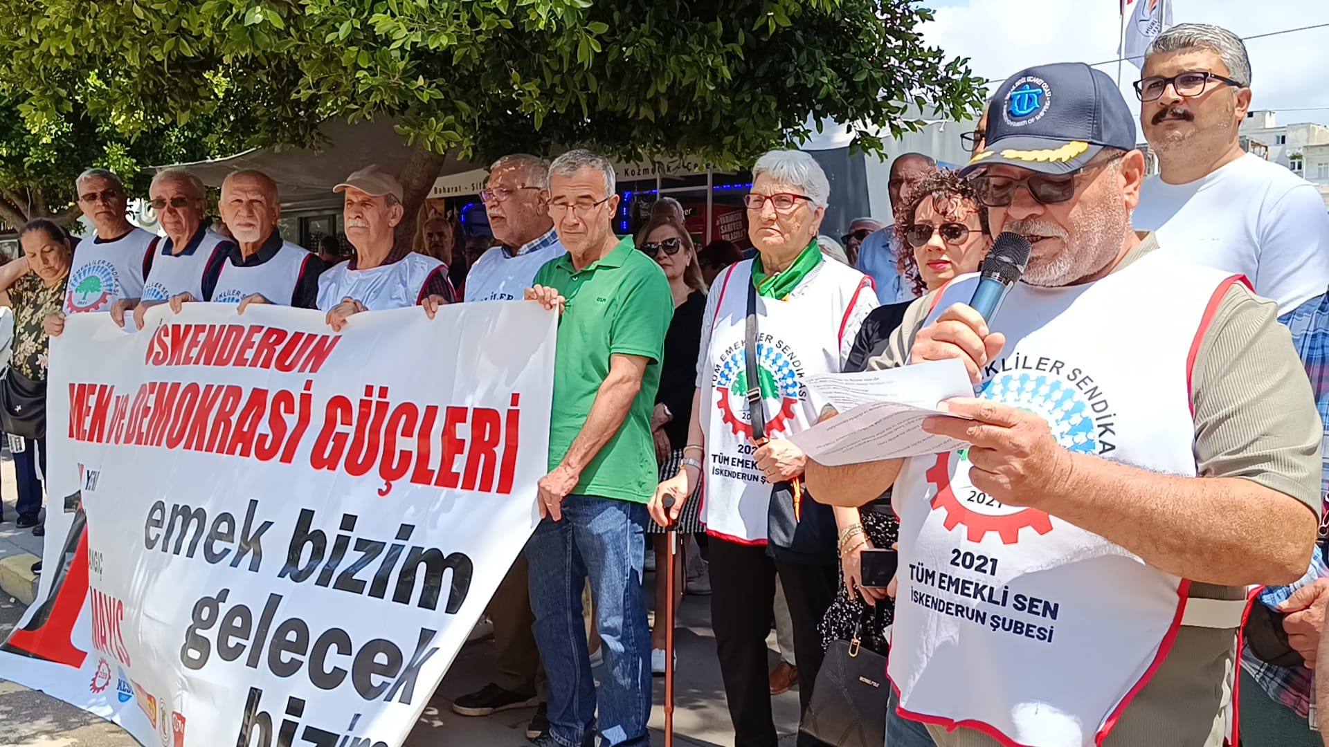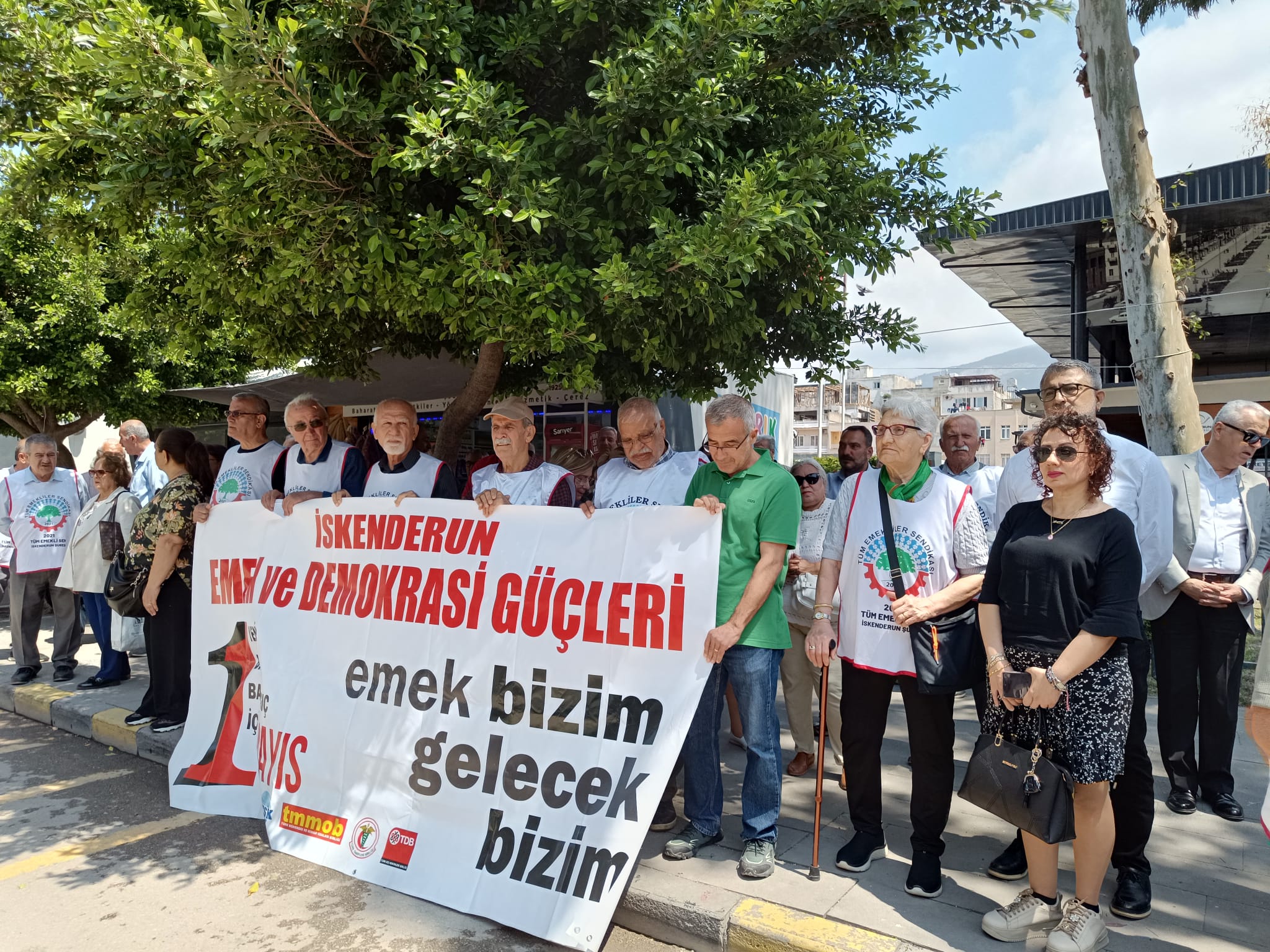 Basın açıklamasında söz alan 2021 Tüm Emekliler Sendikası İskenderun Şube Başkanı Mustafa Çankaya ise konuşmasında Doruk Madencilik işçilerinin sürdürdüğü direnişe geniş yer ayırdı. Çankaya, aylardır maaşlarını alamayan işçilerin haklı bir mücadele verdiğini belirterek; “Bu işçiler sadaka değil, kendi alın terlerinin karşılığını istiyor” dedi.