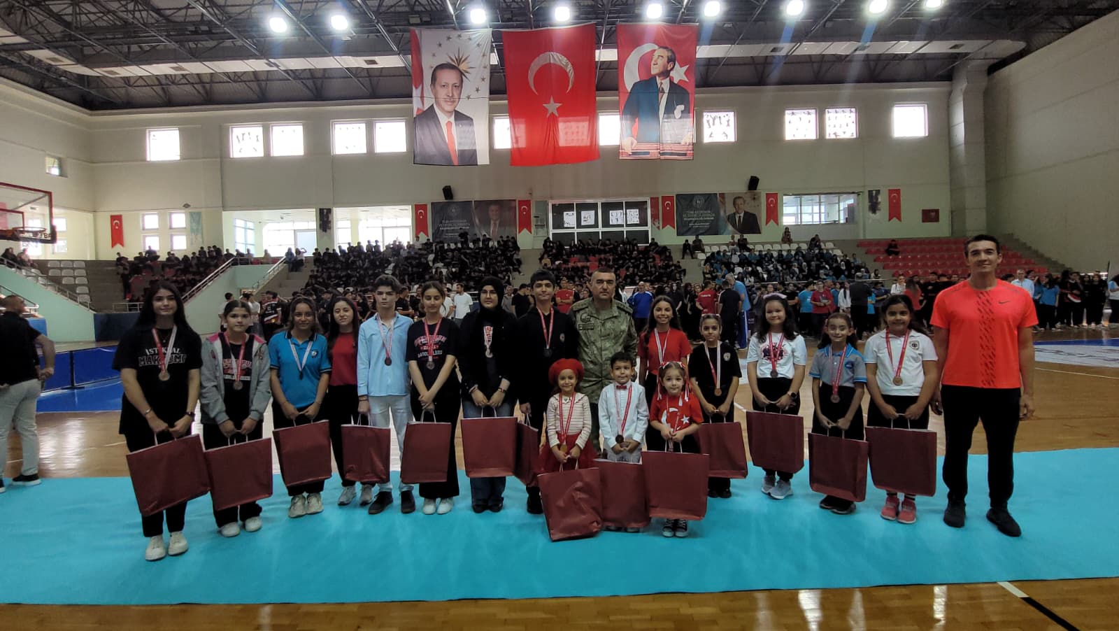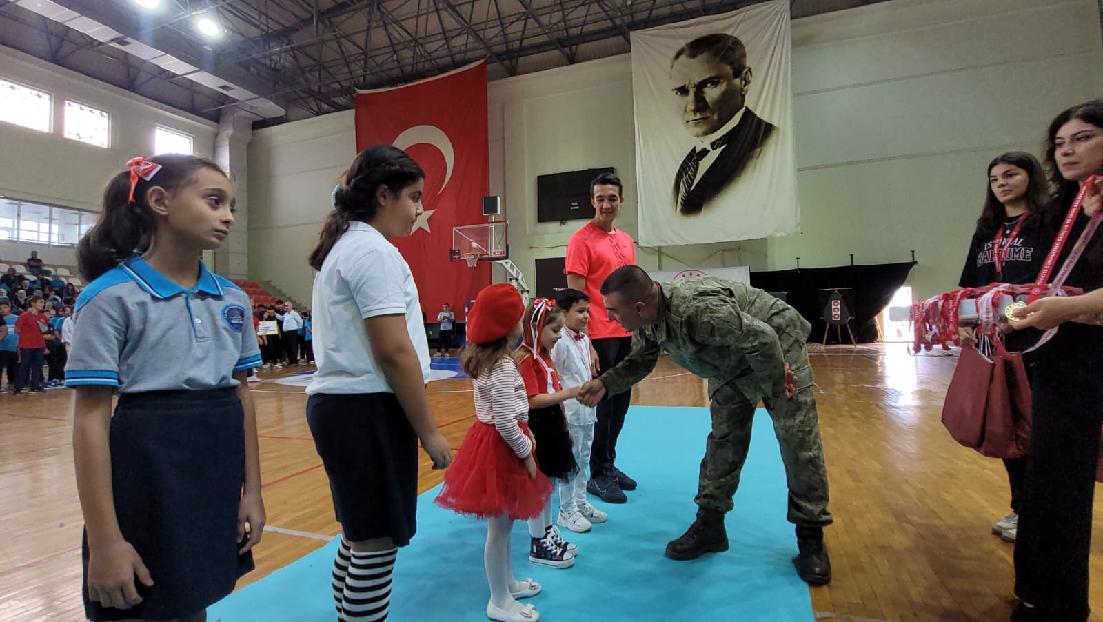 Cumhuriyet’imizin 102. kuruluş yıl dönümü kutlamaları kapsamında düzenlenen sportif müsabakalar ile resim ve kompozisyon yarışmalarında başarılı olan öğrencilere kupa ve madalyaları protokol tarafından verildi.