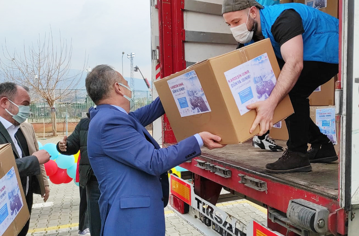Kaymakam Yönden ve İlçe Başkanı Güven, kolileri kendi elleriyle hazırlayarak, bantlayıp tıra yüklediler. Gerçekleştirilen proje hakkında kısa bir konuşma yapan Kaymakam Yönden; “Bu projeye öncülük eden, destek veren herkese çok teşekkür ediyoruz. Bu bizim ülkemizin büyüklüğü, bu Türkiye Cumhuriyeti’nin varlığı, kardeş dost ihtiyacı olan kim varsa hep beraber bir araya gelip kendilerine yönlendiriyoruz. Burada gördüğünüz tır bir tane ama göndermeye devam ediyoruz, devam edeceğiz. Nerede ihtiyaç sahibi varsa Türkiye Cumhuriyeti devleti orada” diye konuştu.