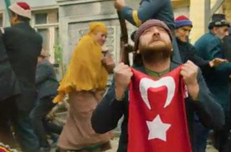 Yunan askerlerinin Türk vatandaşlarını evlerinden çıkardığı sahnede elinde Türk bayrağıyla diz çökerek ağıt yakan Sekmen, izleyenleri oldukça duygulandırdı. (Haber: Helga TERBİYELİ)
