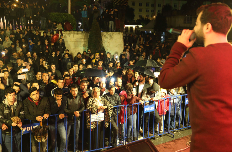 Hatay’ın sevilen isimlerinden hip-hop sanatçısı Taladro, Orontez Grubu üyeleri K-O, Adri, Raptor (Kırmızı Kep)’ın şarkıları ile gönüllerince eğlenen vatandaşlar, Burçin Kumru’nun seslendirdiği birbirinden güzel şarkılar ve performansıyla coşkulu anlar yaşadı. Hatay’ın birbirinden değerli sanatçıları ile 2018 yılına keyifli bir şekilde eğlenerek giren vatandaşlar, şarkılara aşlıklarla da eşlik ederek gönüllerince eğlendi. Konser sonunda muhteşem bir havai fişek gösterisi gerçekleştirildi. (Haber: İlyas Edip TERBİYELİ)