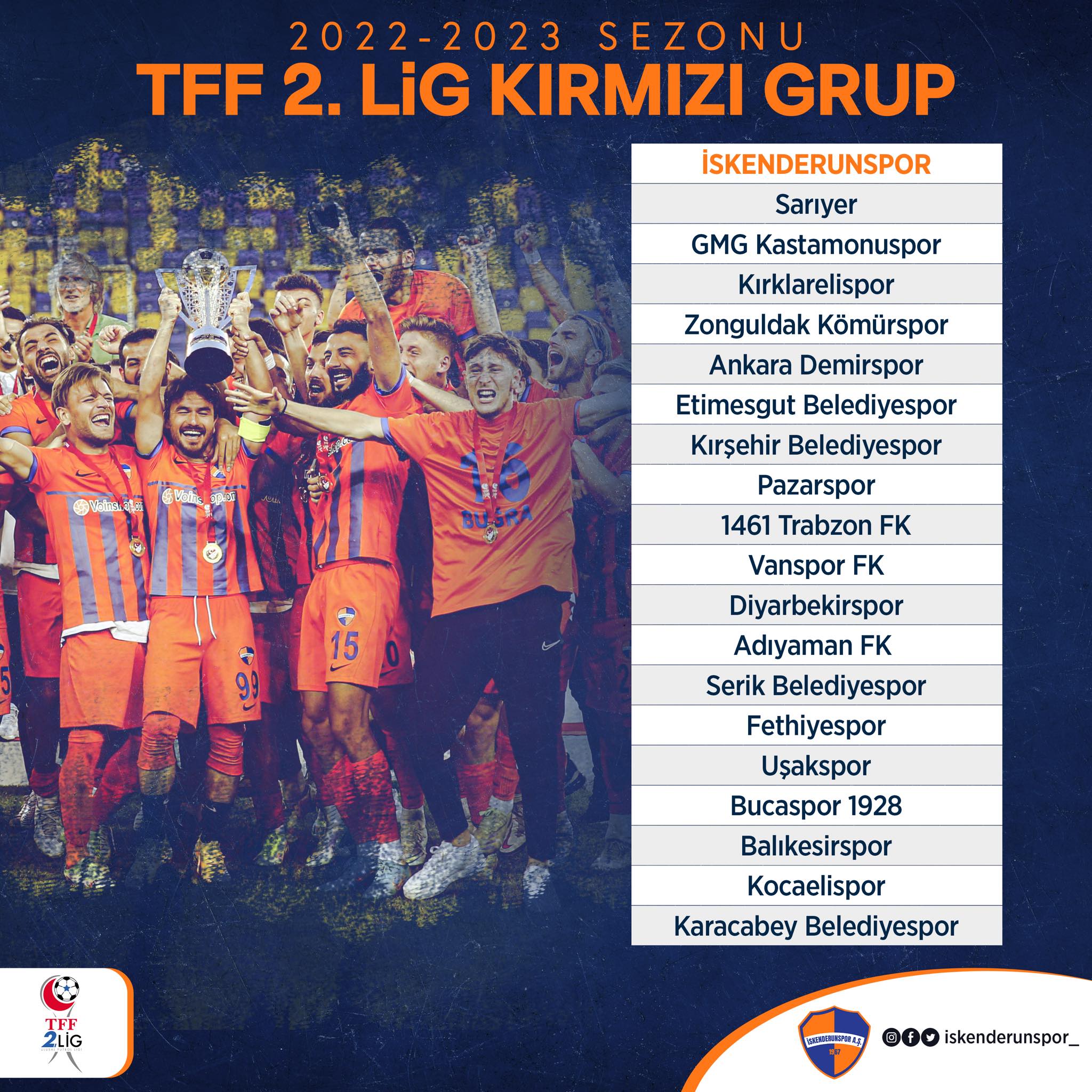 2022-2023 Sezonu TFF 2. Lig Gruplarında yer alacak takımlar, yapılan kura çekimleri sonunda belirlendi. Geçtiğimiz sezon 3. Lig Play-Off müsabakalarında şampiyonluğunu elde ederek 2. Ligde mücadele etmeye hak kazanan temsilcimiz İskenderunspor A.Ş. 2’ci Lig Kırmızı Grupta mücadele edecek.