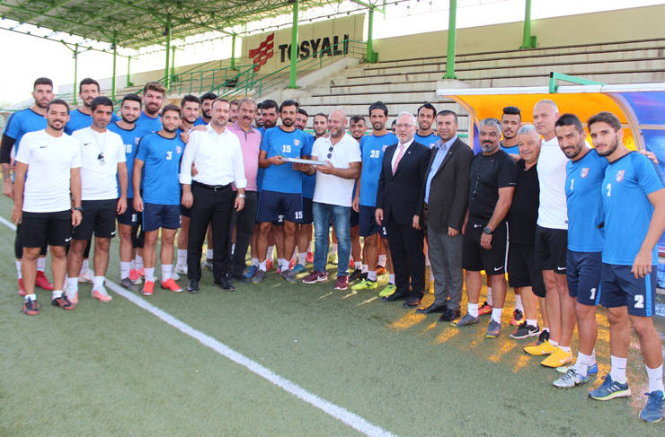 İskenderun Belediye Başkanı Fatih Tosyalı, Başkan Yardımcısı Ahmet Keskin, Destek Hizmetler Müdürü Ergün Saydam ile Asbaşkan Bünyamin Saraçoğlu, Turuncu-Mavili ekibin Sarıseki Fuat Tosyalı Spor Kompleksinde yapılan antrenmanını izlediler. Teknik Direktör Hıdır Özdemir’den takım hakkında bilgi alan Başkan Tosyalı ve yöneticiler, daha sonda elde ettikleri başarıdan dolayı tüm futbolcuları tek-tek tebrik ederek baklava ikramında bulundular.