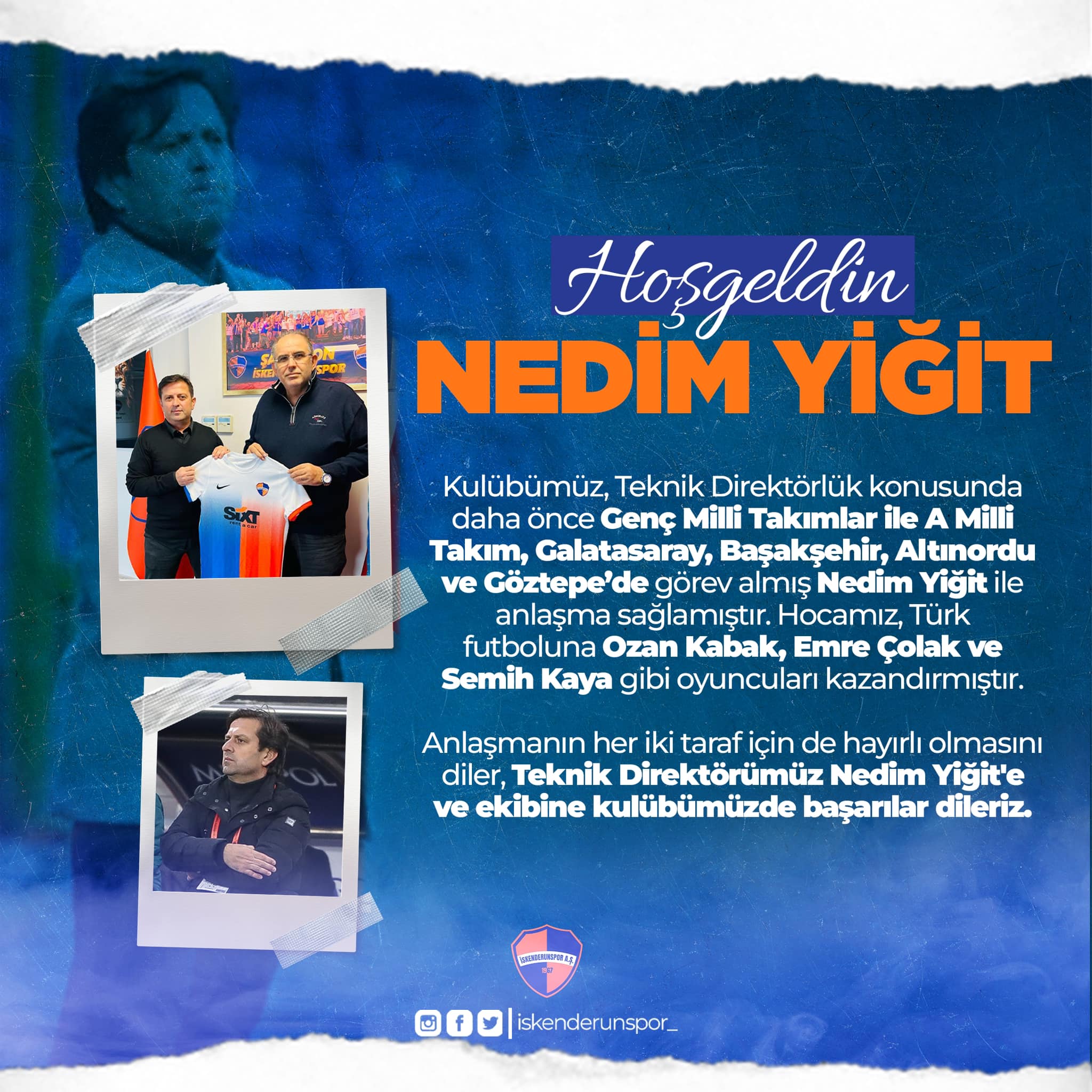 Spor Toto 2. Lig Kırmızı Gruptaki temsilcimiz İskenderunspor, Spor Toto Süper Lig ekiplerinden Medipol Başakşehir FK’nın Akademi Direktörlüğü görevini yapan Teknik Direktör Nedim Yiğit ile anlaşma sağladı.
