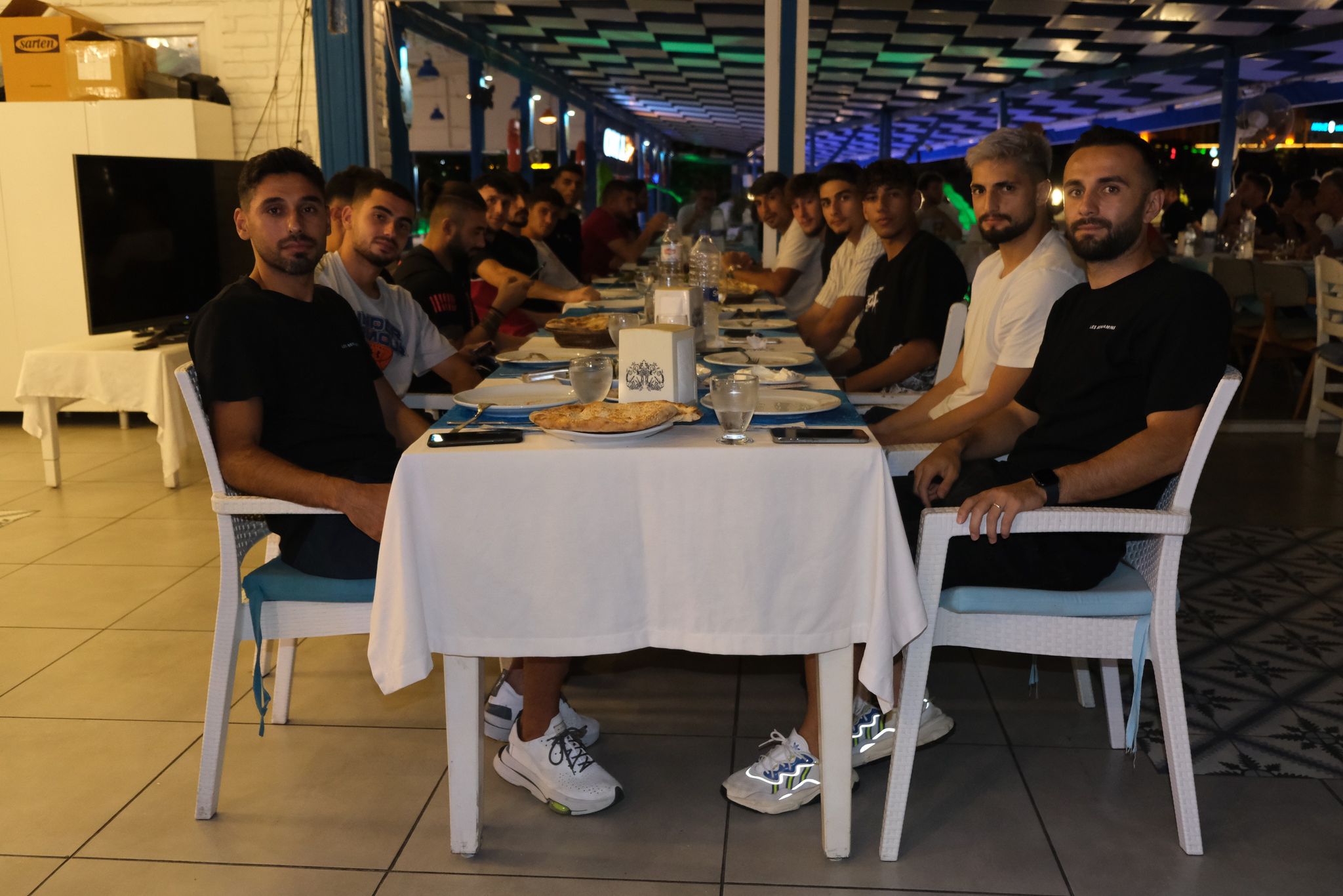 TFF 2. Lig Kırmızı Grupta zirveye oynayan takımlar arasında yer alan temsilcimiz İskenderunspor’da, Yeni Hatay Stadında oynanan zorlu Balıkesirspor karşılaşmasında alınan galibiyetin ardından keyifler yerinde! 3 puanın ardından yüzler gülerken, Turuncu-Mavili ekibin çiçeği burnunda yeni yönetimi, yapılan antrenmanın ardından Arsuz Rhossus Restoranda futbolcularla tanışma yemeği düzenledi.