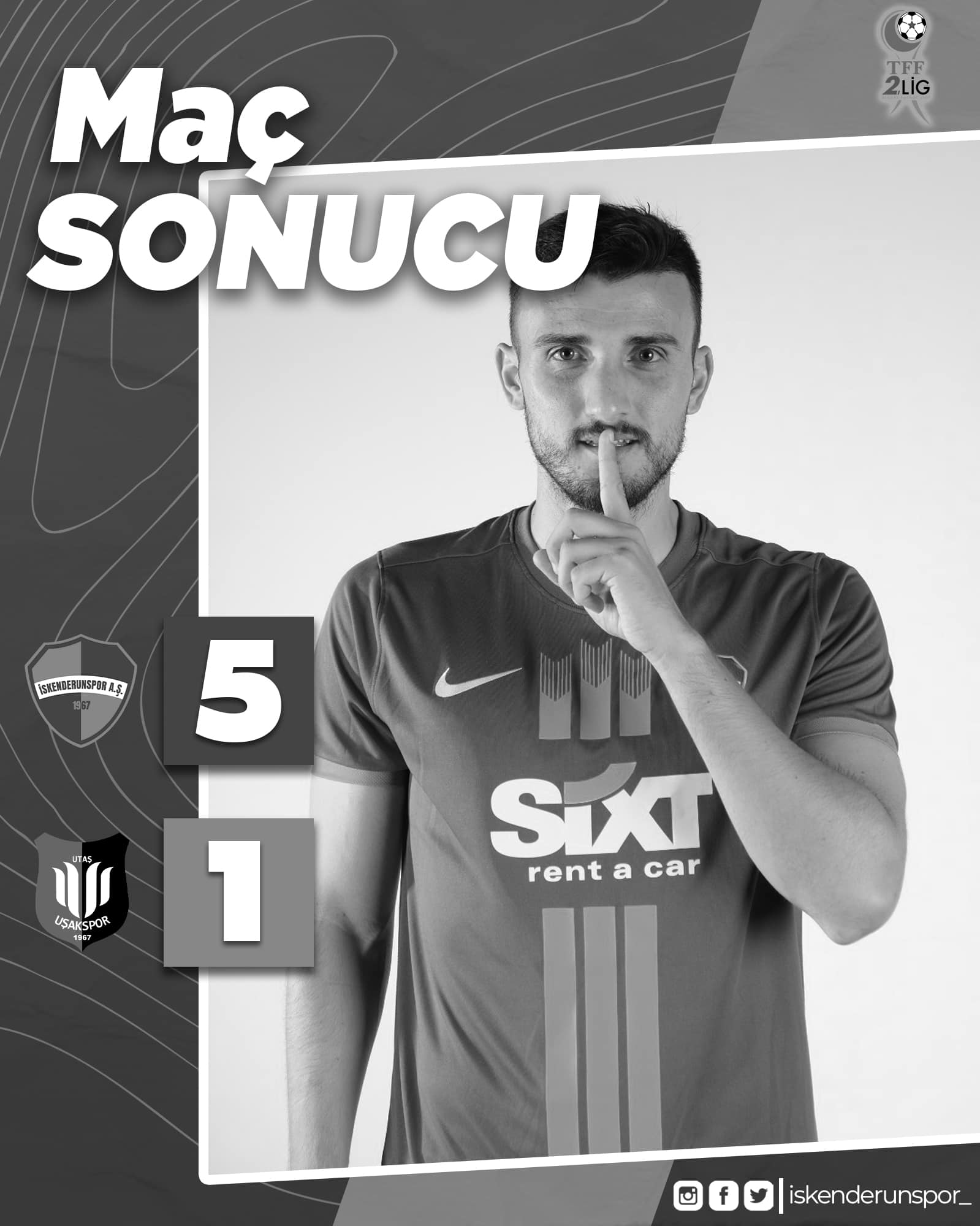 Oğuzhan Uğurlu, Vedat Demir ile Sinan Ertingü’nün yönettiği karşılaşmada temsilcimiz İskenderunspor’un gollerini 58, 70 ve 76. dakikalarda Enes Soy, 74 ve 89. dakikalarda Kadir Arı atarken, konuk ekip Uşakspor’un tek golünü 66. dakikada Cem Aktaş kaydetti.
