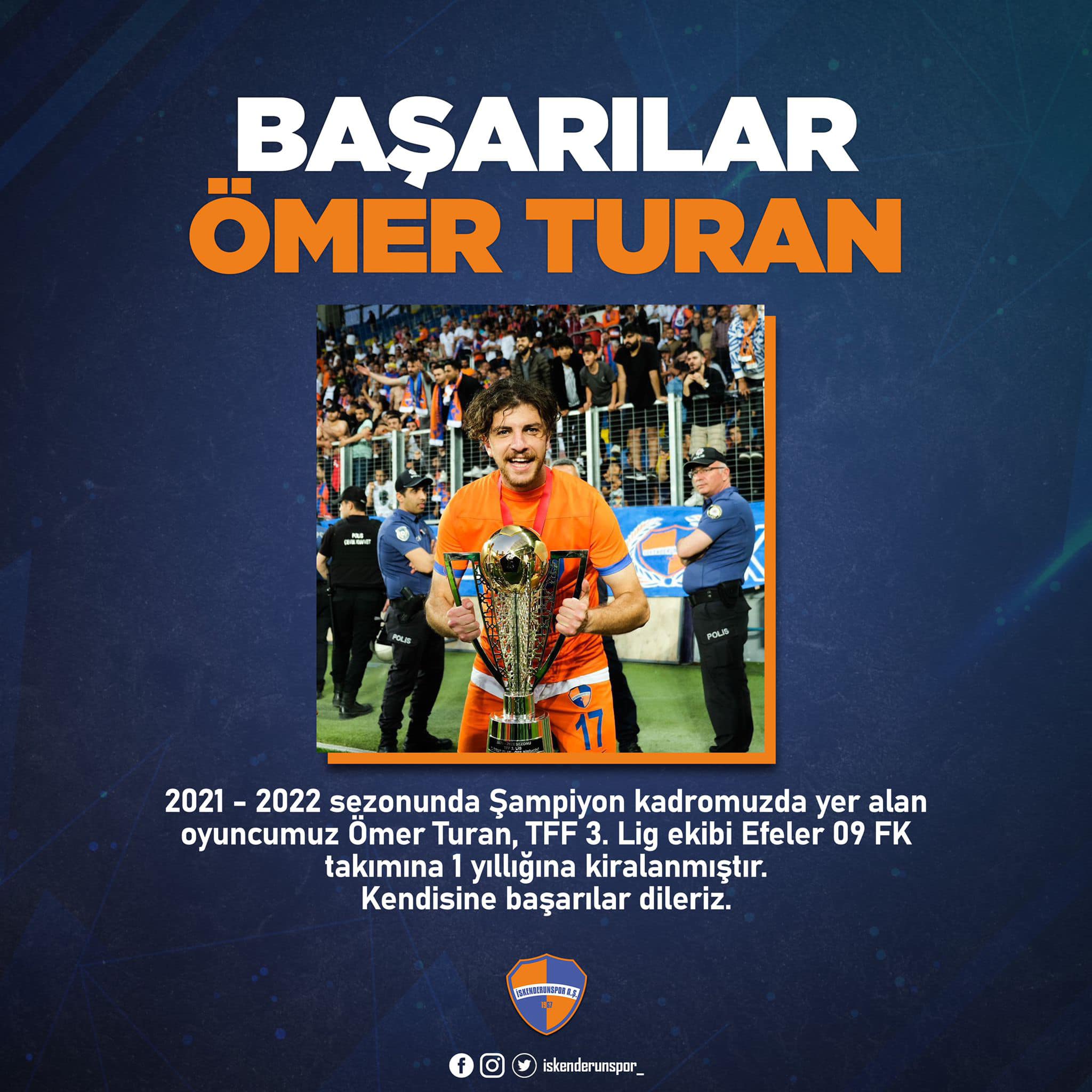 Açıklamalarda Ömer Turan’ın da 1 yıllığına kiralandığı kaydedilirken; “2021- 2022 sezonunda Şampiyon Kadromuzda yer alan oyuncumuz Ömer Turan, TFF 3. Lig ekibi Efeler 09 FK takımına 1 yıllığına kiralanmıştır. Kendisine başarılar dileriz” ifadelerine yer verildi. (Haber: İlyas Edip TERBİYELİ)