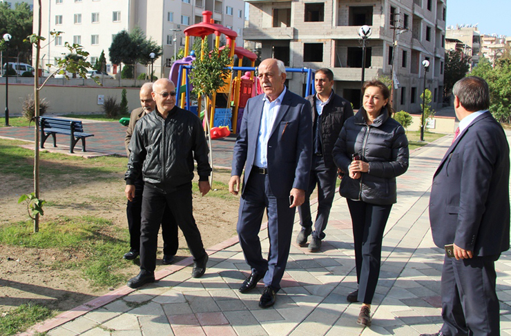 İskenderun Belediye Başkanı Seyfi Dingil, park bahçe müdürlüğü tarafından yapımı tamamlanan parkta incelemelerde bulundu.