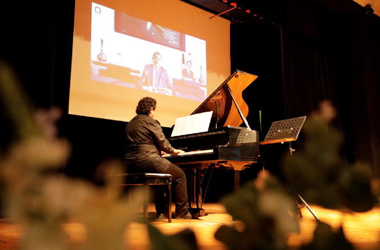 Açılış konuşmasının ardından Mustafa Yazıcı Devlet Konservatuarı (MYDK) öğretim görevlileri tarafından verilen konserde öncelikle Öğr. Gör. Valentyn Trofimov, Öğr. Gör. Olga Trofimova ve Öğr. Gör. Daryna Trofimova klasik Batı Müziği Eserlerinden oluşun Trio Dinletisini sunarken, Öğr. Gör. Rasim Paşaoğlu solo piyano dinletisi sundu. Konser, Öğr. Gör. Emrah Ender Arzuman’nın Paşaoğlu’na piyanoda eşlik ettiği sözlü eserlerle sona erdi.