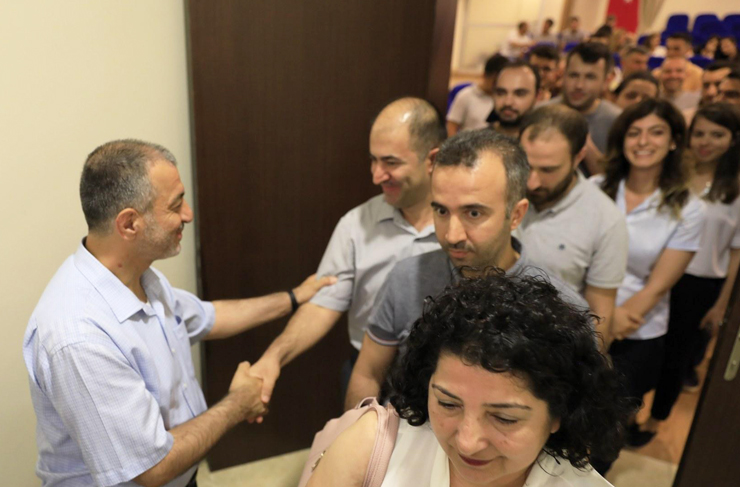 İskenderun Teknik Üniversitesi (İSTE) Ailesi, ‘Ramazan Bayramı’ münasebetiyle Merkez Kampus’taki Barbaros Hayrettin Konferans Salonu’nda gerçekleştirilen bayramlaşma töreninde bir araya geldi. Törene; İSTE Rektörü Prof. Dr. Türkay Dereli, Rektör Yardımcısı Prof. Dr. Mevlüt Aktaş, Genel Sekreter Yılmaz Çiğdem ile akademik ve idari personel katıldı. Samimi bir sohbet havasında olan gerçekleşen programda, İSTE’yen herkes söz alarak bayrama ilişkin duygularını paylaştı.