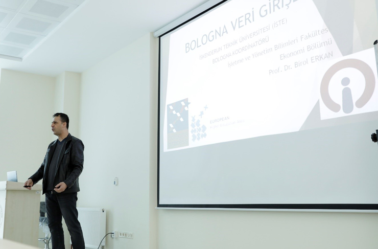 İskenderun Teknik Üniversitesi’nde Fakültelerin, Yüksekokulların ve Meslek Yüksekokullarının “Bologna Süreci Eğitimleri” devam ediyor. Sürece ilişkin ikinci eğitim 17 Mart Çarşamba günü İSTE Bologna Koordinatörü Prof. Dr. Birol Erkan tarafından Turizm Fakültesi’nde gerçekleştirildi. Eğitime İSTE Rektör Yardımcısı ve Turizm Fakültesi Dekanı Prof. Dr. Mustafa Yüksek ve Turizm Fakültesi öğretim elemanları katıldı.