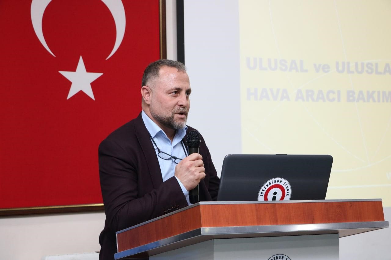 Konferansta konuşan Global Aviation Services CEO’su Zeydan Öncü; “Almanya’da aldığım eğitimlerin ardından AirBus firmasında 20 yıl çalıştım. Daha sonra kendi firmamı kurdum. Şu anda Abu Dabi’de Conversion Center’da önemli isimlerin uçak ve helikopterlerini dönüştürüyoruz. Bu isimler içinde Prience. ‘2 fazla verip işi ehline ver. Ekmeği berberden değil fırıncıdan al’ deyişindeki gibi insanlar işi ehline teslim ediyor. Aldığımız sertifikalar dünya çapında geçerli olan sertifikalardır. Dünyanın her yerinde ve tüm havayollarında çalışabileceğiniz şekilde mezun olmanız için eksik modüllerinizi tamamlayacağız” dedi. Öncü, ayrıca öğrencilerin sahip olması gereken niteliklerle ilgili genel bilgileri verdi ve vermekte oldukları eğitimler için İSTE hocalarını tebrik etti.