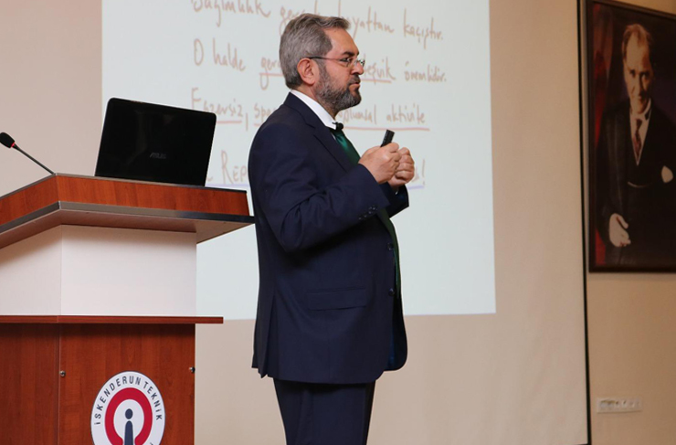 Daha sonra söz alan Prof. Dr. Necdet Ünüvar, ilk olarak, ‘bağımlılık nedir, bağımlılık türleri nelerdir, neden bağımlı oluruz, kimler bağımlı olabilir, madde bağımlılığı nedir, teknoloji bağımlılığı nedir vb. gibi konularda bilgiler verdi. günümüzde bağımlı olmanın daha kolay olduğunu ifade eden Ünüvar; “İskenderun Teknik Üniversitesi’ni çok beğendim. Keşke bizim öğrencilik yıllarımızda da böyle güzel üniversitelerde okumak nasip olsaydı. Günümüzde, artık bağımlı olmak maalesef çok daha kolay, bu nedenle her şeyin hız kazandığı ve kolay ulaşılabilir olduğu günümüzde bağımlılıkla mücadele daha çok önem kazanmıştır. İnsanlar bağımlı olmayacaklarını düşünerek, bir kereden bir şey olmaz diyerek bağımlılık yapan maddeleri kullanırlar. Ancak bu maddeler beyinde dopamin denilen bir salgı salgılar, bu da insanlarda haz dediğimiz duyguyu uyandırır ve maalesef bağımlılık gerçekleşir. Özellikle uyuşturucu ve tütün mamulleri tek kullanımda bile bağımlılık oluşturabilmektedir.