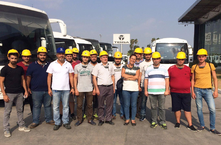 İskenderun Meslek Yüksekokulu (İMYO) Müdürü Doç. Dr. Selçuk Mıstıkoğlu tarafından koordinasyonu yapılan teknik geziye, İMYO Müdür Yardımcısı Öğretim Görevlisi Hakan Kalpakçıoğlu ve Öğretim Görevlisi Bekir Alpman ile birlikte katılan Otomotiv Bölümü öğrencileri, elektrikli otomobil ve otobüs konusunda Ülkemizdeki önde gelen kuruluşlardan biri olan TEMSA’da ilgili teknolojilerin son durumunu görme fırsatı buldular. TEMSA Teknik Eğitim Uzmanı Bülent Köprülü tarafından öğrencilere otobüslerin üretim aşamasından bitimine kadar olan tüm süreçler yerinde gösterildi. Bülent Köprülü daha sonra geziye katılan öğrencilere yeni ürünler ve iş hayatı hakkında bilgiler verdi.