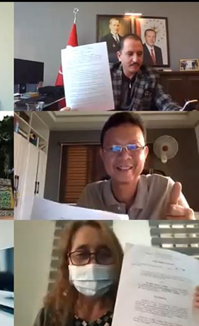 22 Aralık Perşembe günü çevrimiçi imzalanan mutabakat anlaşması toplantısına İSTE Rektörü Prof. Dr. Tolga Depci ve Pampanga Devlet Tarım Üniversitesi (PSAU) Rektörü Dr. Lyndon G. Solis’in yanı sıra İSTE Rektör Yardımcısı Prof. Dr. Gökhan Gündüz, İSTE Dış İlişkiler Genel Koordinatör Yardımcısı Dr. Öğr. Üyesi Ali Bıçkı, PSAU Uluslararası İlişkiler Direktörü Dr. Aris Miclat, Kaliteden Sorumlu Direktörü Dr. Gerald Salas ile İSTE ve PSAU’dan çeşitli kademelerde görevli yetkilileri katıldı.
