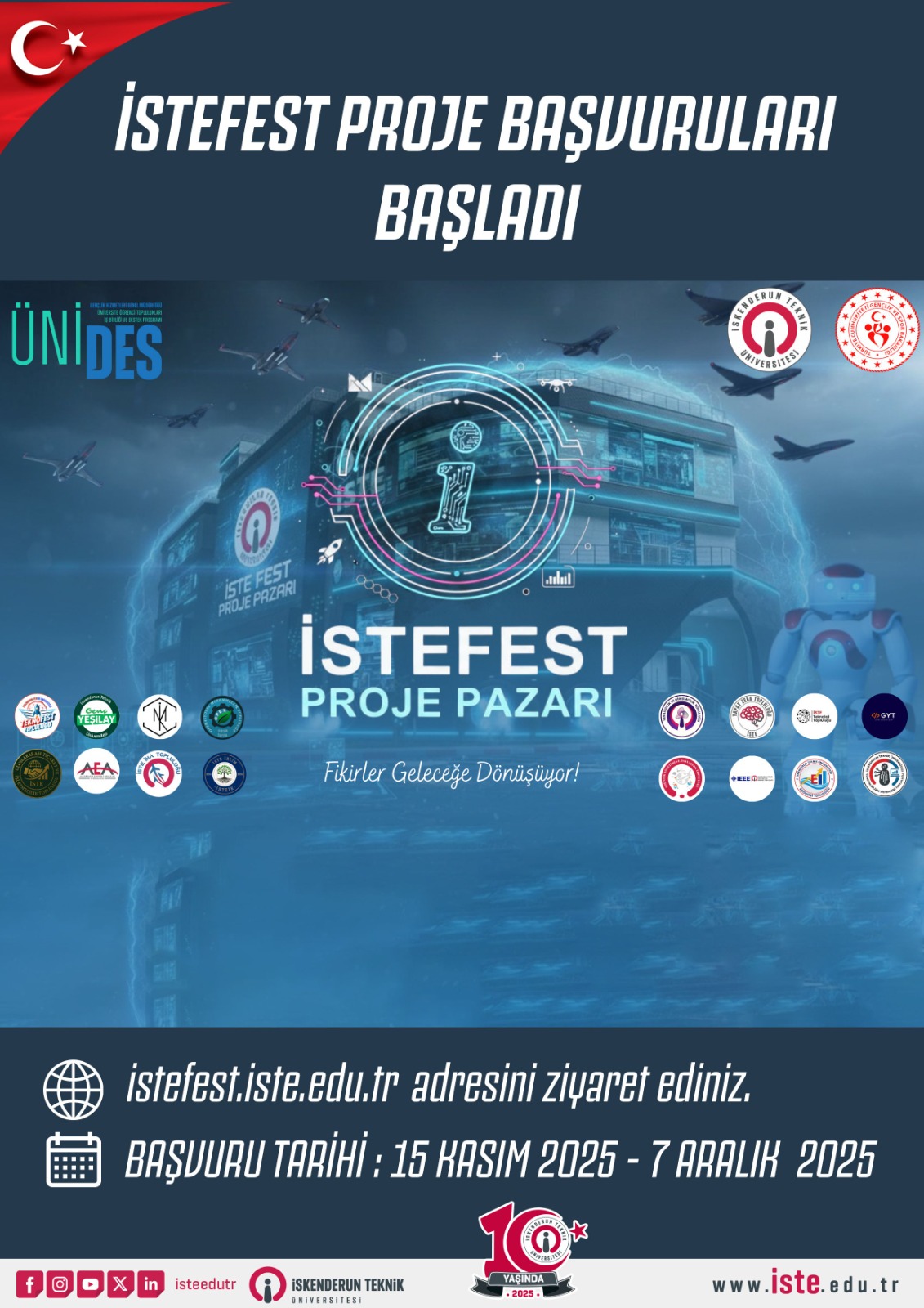 Gençlik Hizmetleri Genel Müdürlüğü tarafından desteklenen ÜNİDES Projesi kapsamında 15 üniversite topluluğunun iş birliğiyle, 1-27 Aralık 2025 tarihlerinde İSTEFEST Proje Pazarı düzenlenecek.