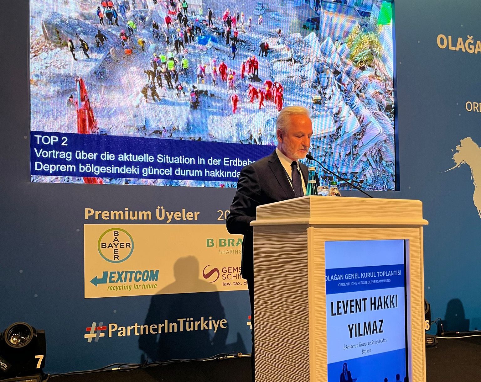 İskenderun Ticaret ve Sanayi Odası Yönetim Kurulu Başkanı Levent Hakkı Yılmaz, Antakya TSO Başkanı Hikmet Çinçin ile birlikte İstanbul’da düzenlenen Alman Türk Ticaret ve Sanayi Odası Genel Kuruluna katıldı.