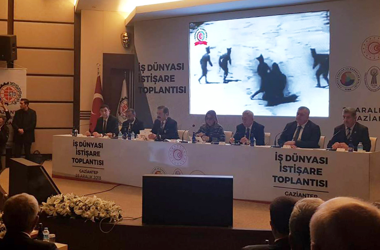 İş Dünyası İstişare Toplantısı, TOBB Başkanı M. Rifat Hisarcıklıoğlu, Ticaret Bakanı Ruhsar Pekcan, TESK Başkanı Bendevi Palandöken, Gaziantep Ticaret Odası Başkanı Mehmet Tuncay Yıldırım, Gaziantep Sanayi Odası Başkanı Adnan Ünverdi, Gaziantep Ticaret Borsası Başkanı Mehmet Akıncı, Gaziantep Esnaf Odası Başkanı Ömer Küsbeoğlu, birçok ilin oda ve borsa başkanları ve çok sayıda davetlinin katılımıyla Gaziantep Ticaret Odası toplantı salonunda gerçekleştirildi.