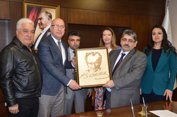 Mutabakat Protokolü imzalarının atılmasının ardından İskenderun Mesleki ve Teknik Anadolu Lisesi Müdürü Yusuf Yıldırım’da İTSO yönetimine desteklerinden dolayı teşekkür ederek, okul öğrencilerinin Ahşap Siensi makinesinde hazırladıkları Atatürk tablosunu hediye ettiler. (Haber: İlyas Edip TERBİYELİ)