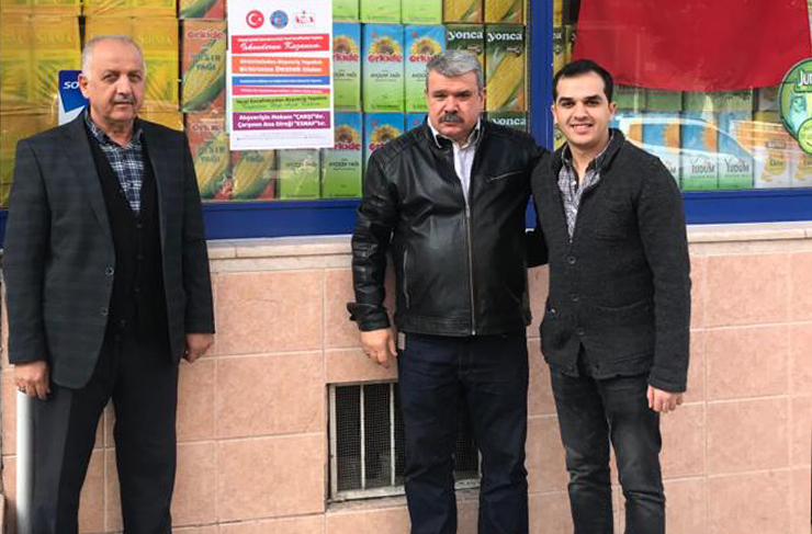 Yerel esnaftan alış veriş yapılması ve yerel esnafa destek kampanyası kapsamında esnaflara vitrinlerine asmaları için afişler dağıtıldı.