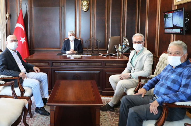 Hatay Valisi Rahmi Doğan’ın ziyaretinde, İTSO Başkanı Levent Hakkı Yılmaz, İTSO Başkanı Yardımcısı Muhsin Yeter ve İTSO yönetim kurulu üyesi Müfit Tennioğlu yer aldı.