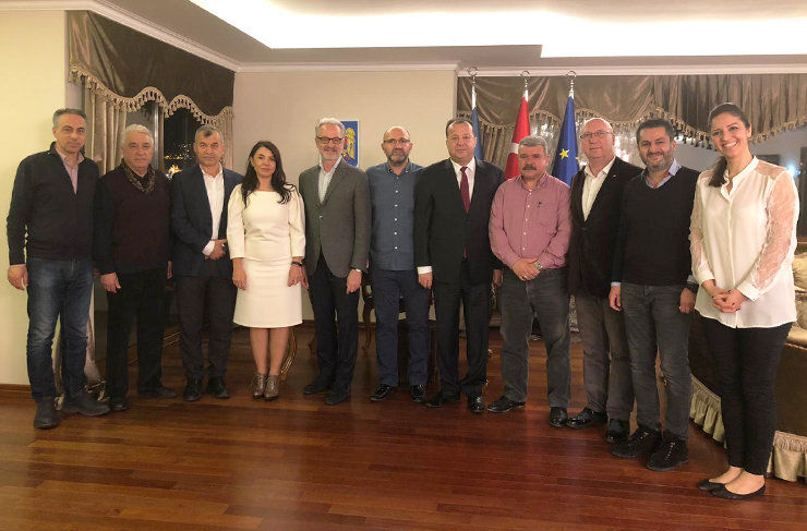 Romanya İskenderun Fahri Konsolosu Faruk Rende’nin ziyaretinde, İTO Başkanı Levent Hakkı Yılmaz, İTSO Meclis Başkanı Okan Belli, İTSO Başkan yardımcıları Muhsin Yeter, Mahir Taner, İTSO muhasip üye Gassan Kuran, İTSO yönetim kurulu üyeleri Müfit Tennioğlu, Raşit Özyurt, Selma Yılmaz ve Yusuf Yılmaz yer aldı. (Haber: Doğan SÜSLÜ)