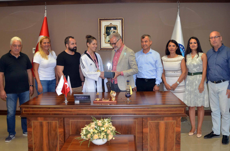 Ankara’da düzenlenen Yıldızlar Türkiye Tekvando Şampiyonasında Türkiye Şampiyonu olan Azra Tuba Torun, Karasopa Tekvando Spor Kulübü antrenörü İsa Karasopa ile birlikte İTSO Başkanı Levent Hakkı Yılmaz’ı ziyaret etti.