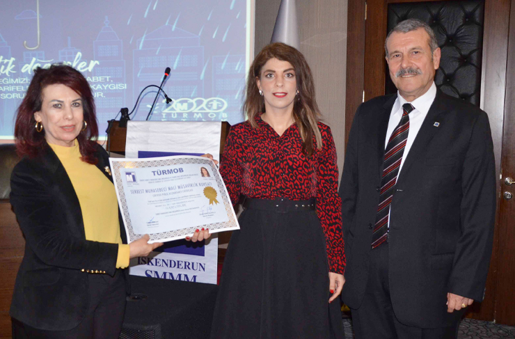 İskenderun Serbest Muhasebeci Mali Müşavirler Odası Başkanı Merih Hasan Yıldırım, seminer sonunda TÜRMOB Eğitmeni Nedim Boz’a günün anısına plaket takdim etti. (Haber Merkezi)