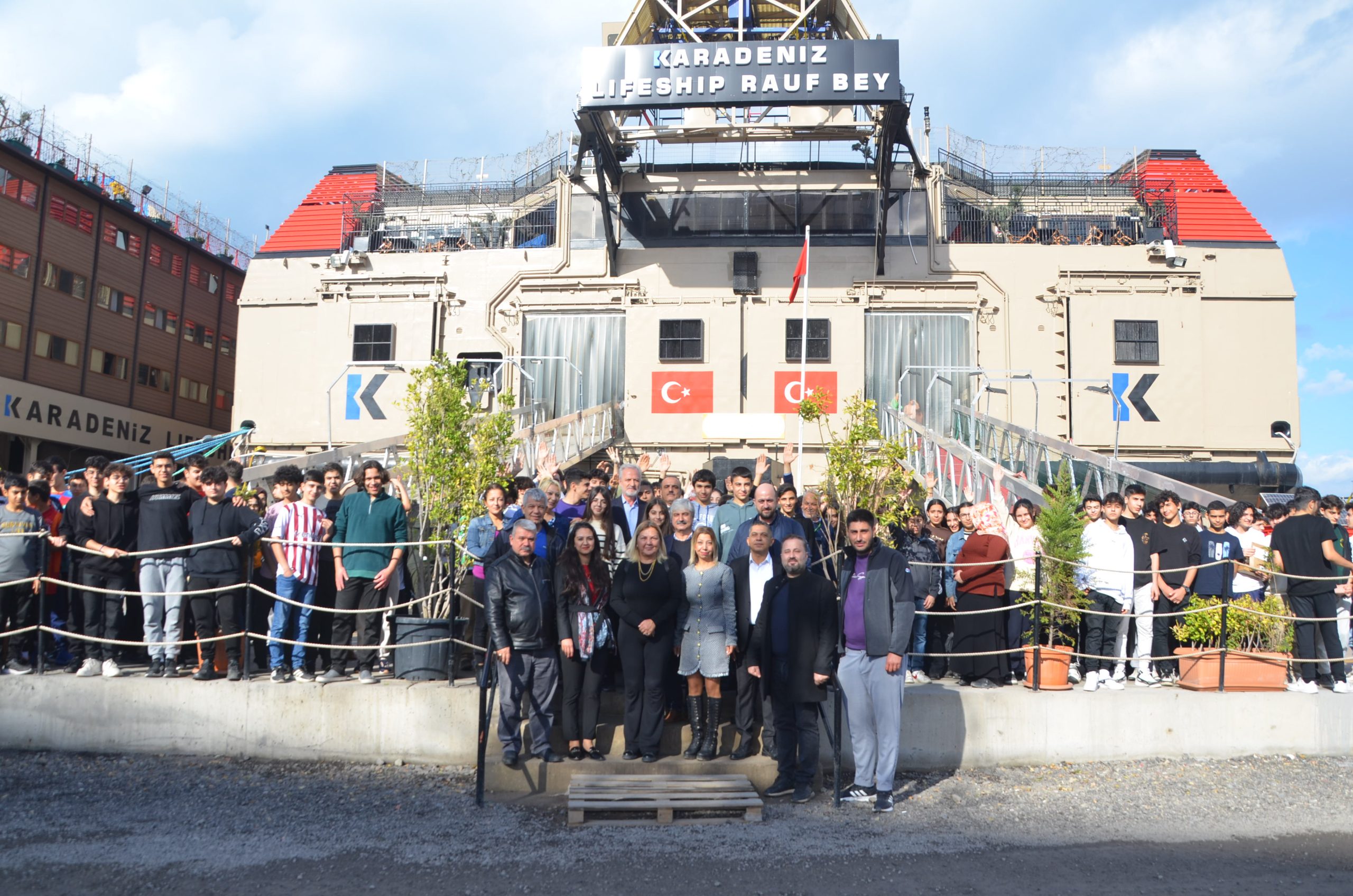 Yemek sonrası öğrenciler, İTSO Yönetimi ile birlikte Karadeniz LifeShip Süheyla Sultan Gemisi önünde toplu halde hatıra fotoğrafı çekildiler. (Haber Merkezi)