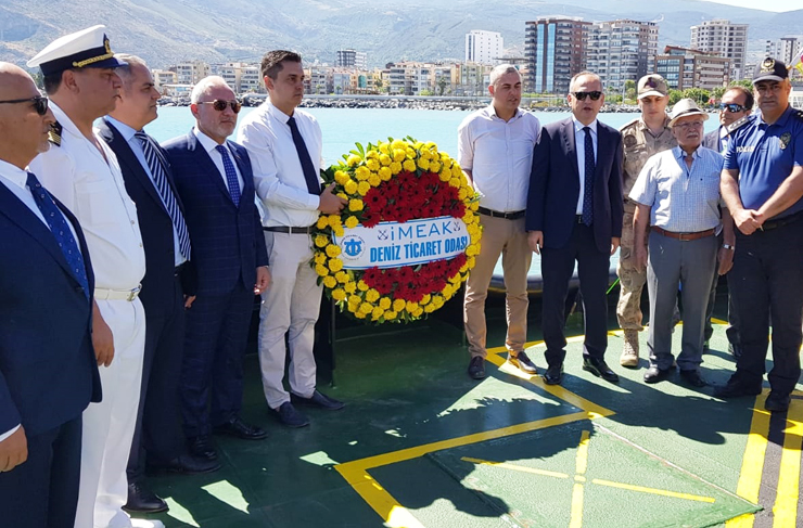 Anıt Alanındaki törenin ardından, şehit denizcilerimizin ruhuna izafeten denize çelenk bırakılması etkinliği gerçekleştirildi. İskenderun Şehir İskelesi’nde hazır bulunan römorköre binerek denize açılan protokol üyeleri ve davetliler; şehit denizcilerimizin ruhuna dua okuyarak, deniz sularına çelenk bıraktı. Ardından deniz sularımızda sahil güvenlik botu, römorkörler ve çeşitli deniz vasıtaları ile birbirinden güzel gösteriler icra edildi.