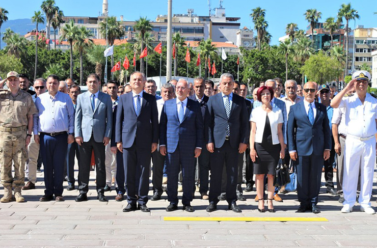 Kutlamalar ilk olarak sabah saatlerinde düzenlenen çelenk sunma töreniyle başladı. Atatürk Anıt Alanı’nda icra edilen çelenk sunma töreninde; İskenderun Liman Başkanlığı ve İMEAK Deniz Ticaret Odası İskenderun Şube Başkanlığı tarafından Ulu Önder Atatürk’ün manevi huzuruna çelenk sunulmasının akabinde, aziz şehitlerimizin anısına bir dakikalık saygı duruşu yapılarak, İstiklal Marşımızın eşliğinde şanlı Türk Bayrağımız göndere çekildi.